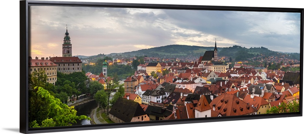 <p>Czech Republic, South Bohemian Region, Cesky Krumlov. Buildings in old town at dawn.</p>