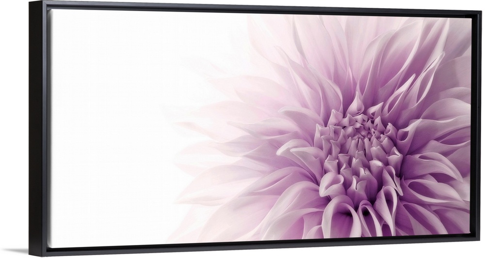 <p>A detail of a flower blossom that has been photographed with lighting that makes its highlights fade into the background in this decorative panoramic wall art.</p>