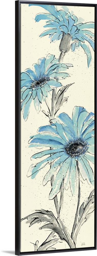 <p>Contemporary artwork of blue flowers close-up in the frame of the image.</p>