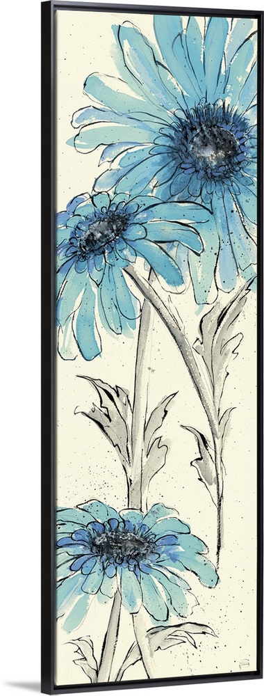 <p>Contemporary artwork of blue flowers close-up in the frame of the image.</p>