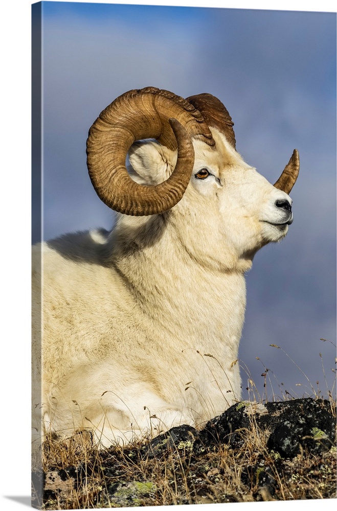 <p>Dall sheep ram (ovis dalli) in Denali national park and preserve in interior Alaska in autumn, Alaska, united states of America.</p>