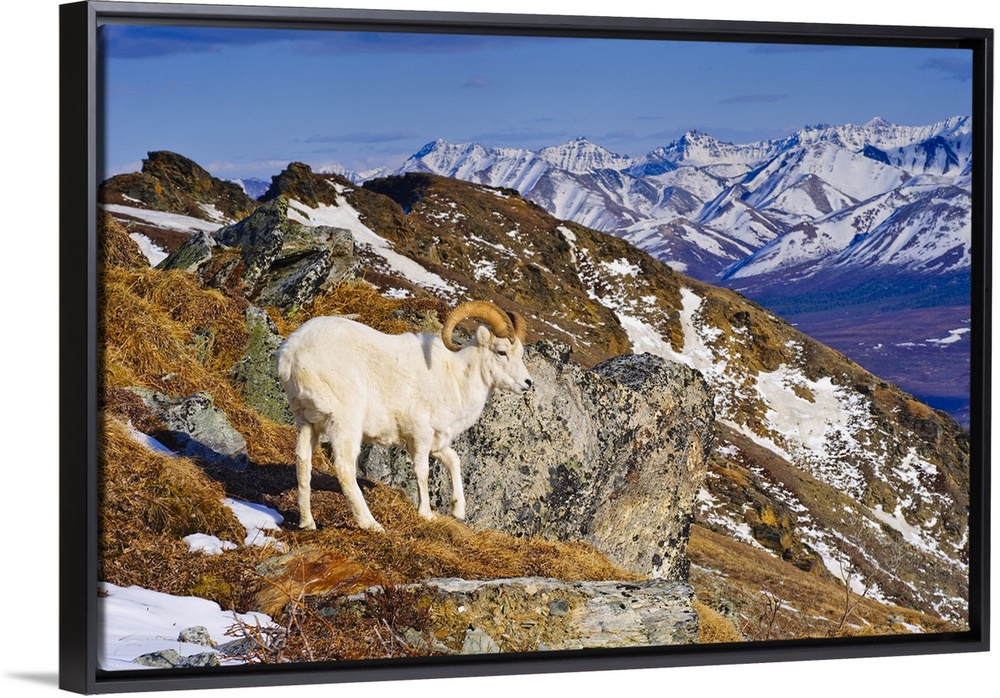 <p>An Adult Dall Sheep Ram Standing On Mount Margrett With The Alaska Range In The Background, Denali National Park, Alaska, Spring</p>