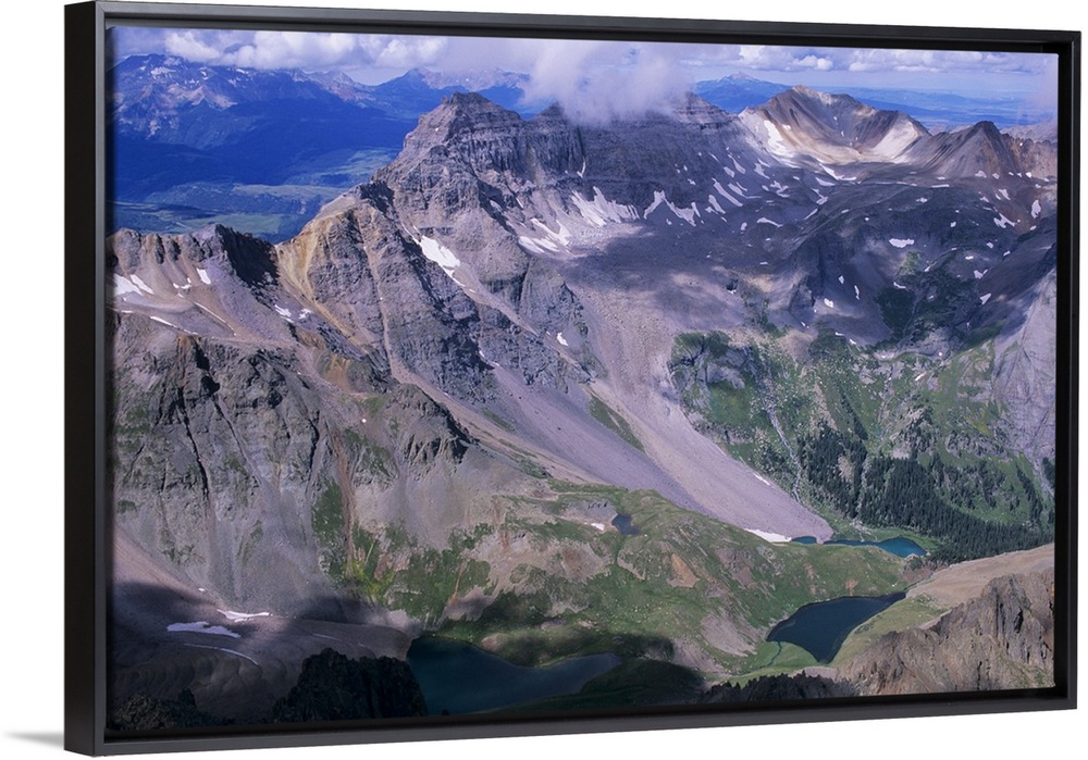 <p>View of Dallas Peak above Blue Lake Basin from top of Mount Sneffels, Mount Sneffels Wilderness, San Juan Mountains, Colorado.</p>