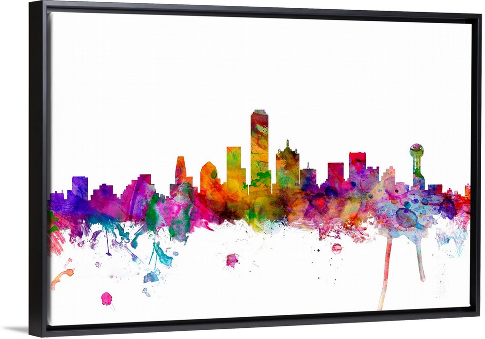 <p>Watercolor artwork of the Dallas skyline against a white background.</p>