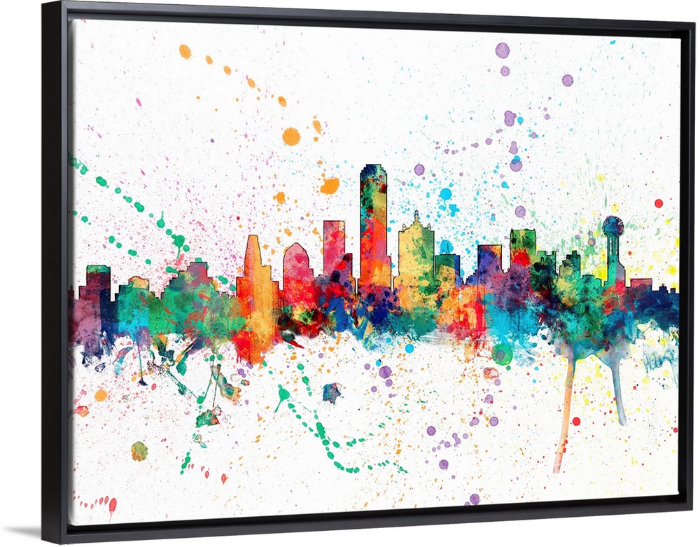 <p>Wild and vibrant paint splatter silhouette of the Dallas skyline.</p>
