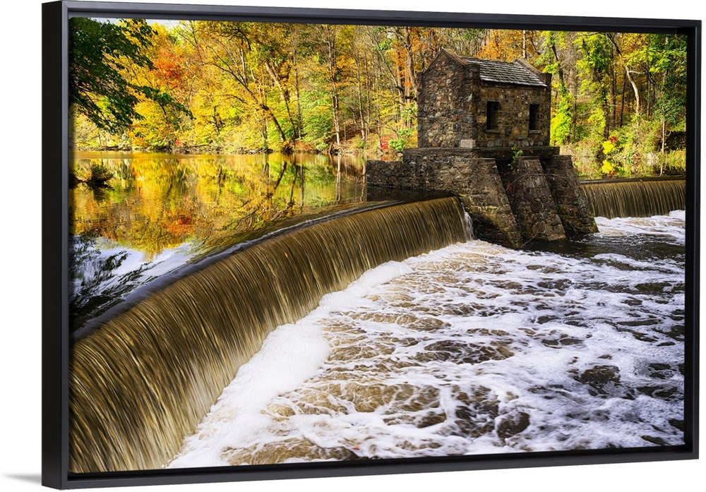 <p>Dam on Speedwell Lake at the Place of the Old Ironwork During Fall, Morristown, Morris County, New Jersey, USA</p>