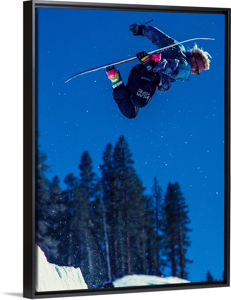 <p>Damian Sanders grabs his snowboard in the air in June Mountain, June Lake, California.</p>