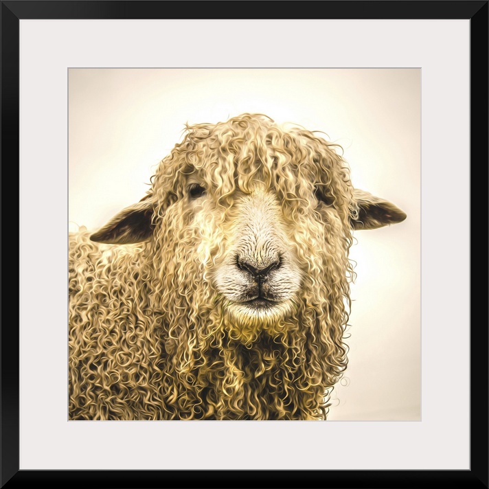 <p>sheep with thick coat of wool.</p>