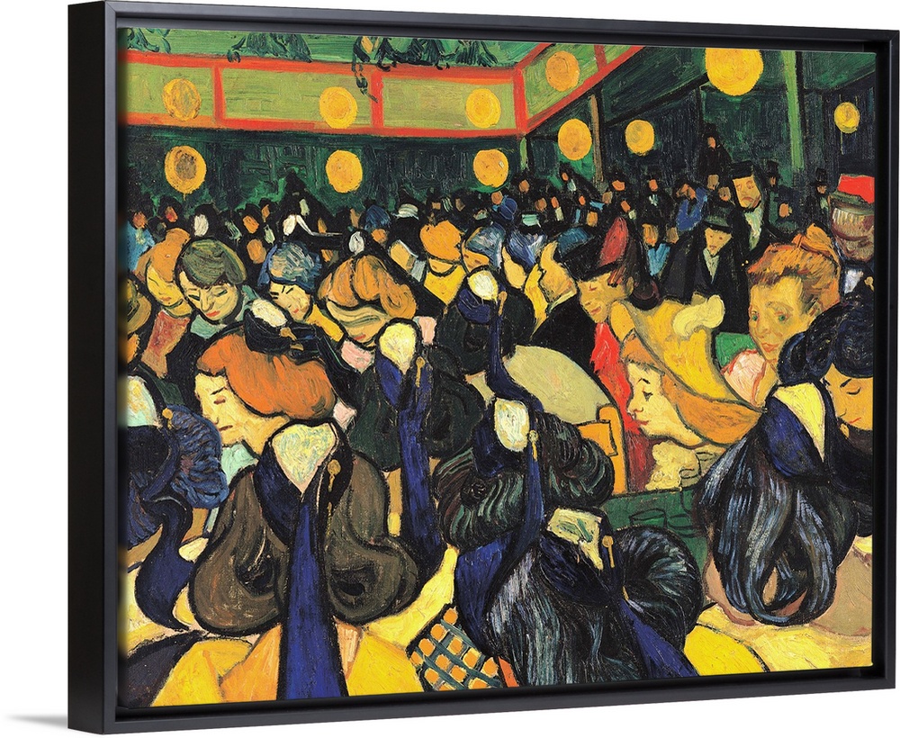 <p>The Dance Hall in Arles, by Vincent Van Gogh, 1888, 19th Century, oil on canvas, cm 65 x 81 - France, Ile de France, Paris, Muse dOrsay, RF1950-9. All. Dance Hall in Arles lights chandelier women men yellow blue dress hat brown. (251259) Everett Collectio</p>