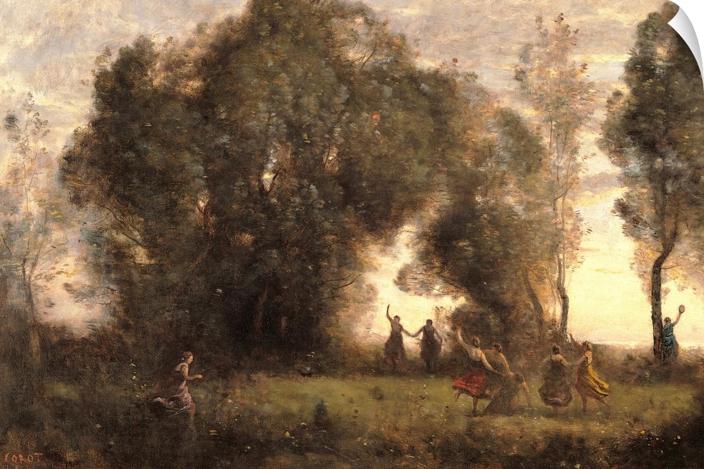 <p>The Dance of the Nymphs, by Jean-Baptiste-Camille Corot, 1860 - 1865 about, 19th Century, oil on canvas, cm 49 x 77,5 - France, Ile de France, Paris, Muse dOrsay. All. Wood landscape with dancing nymphs dance trees clearing. (273029) Everett Collection\Mo</p>
