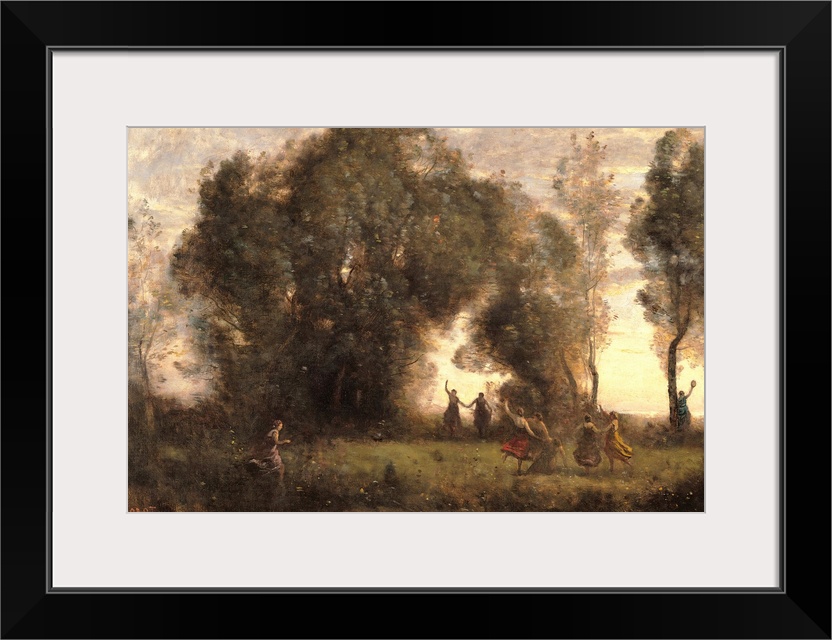 <p>The Dance of the Nymphs, by Jean-Baptiste-Camille Corot, 1860 - 1865 about, 19th Century, oil on canvas, cm 49 x 77,5 - France, Ile de France, Paris, Muse dOrsay. All. Wood landscape with dancing nymphs dance trees clearing. (273029) Everett Collection\Mo</p>