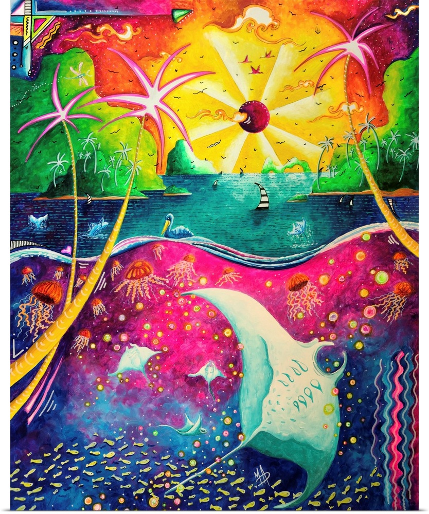 Art Contemporary Art Megan Duncanson Landscapes Seascapes Skyscapes Sunset Multicolor Wall Art Painting Wildlife Marine Life Ray