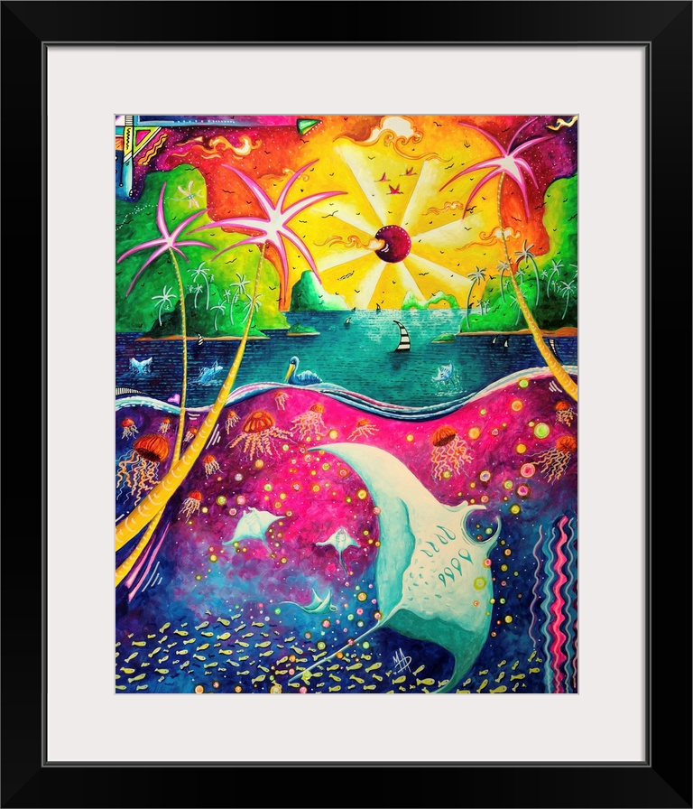 Art Contemporary Art Megan Duncanson Landscapes Seascapes Skyscapes Sunset Multicolor Wall Art Painting Wildlife Marine Life Ray