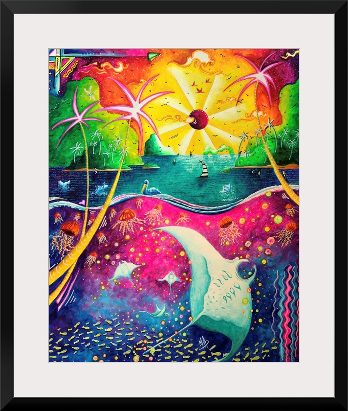 Art Contemporary Art Megan Duncanson Landscapes Seascapes Skyscapes Sunset Multicolor Wall Art Painting Wildlife Marine Life Ray