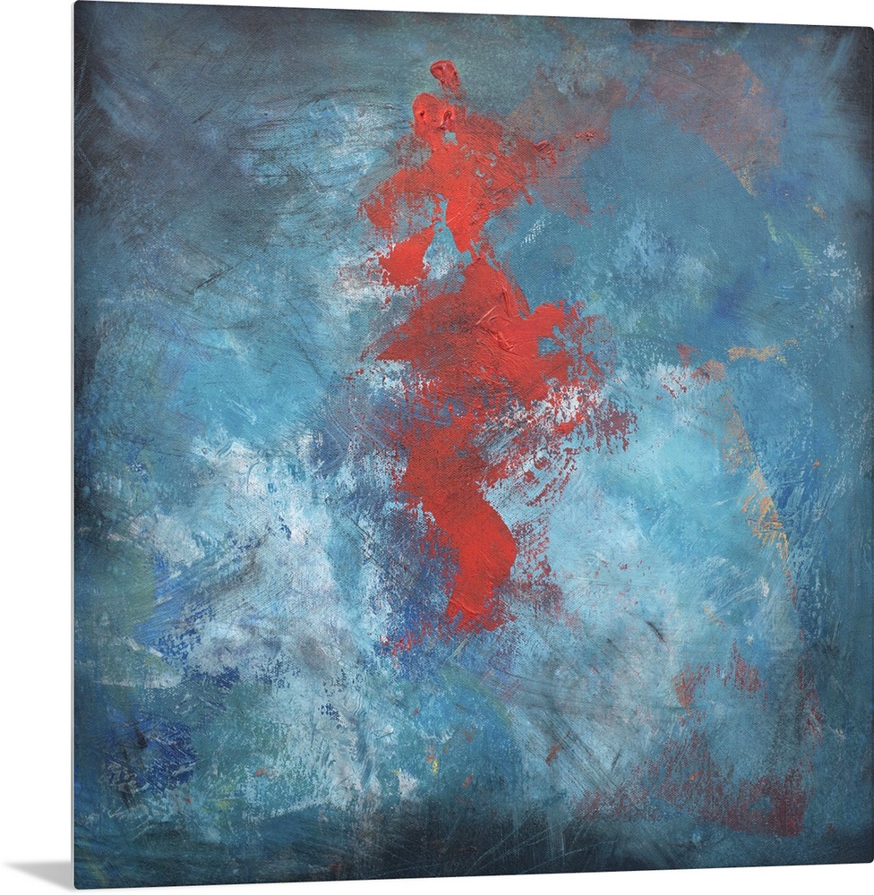 <p>Abstract contemporary painting with a large red center on blue.</p>