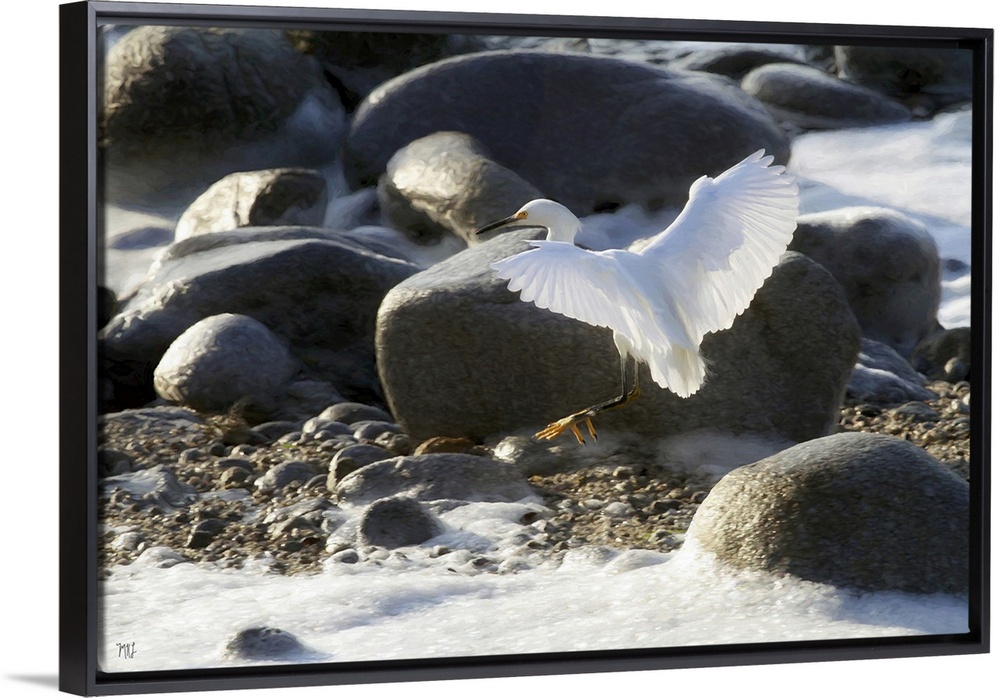 <p>A graceful snowy egret maneuvers around incoming waves in Pacific Grove near Pebble Beach on the California coast.</p>