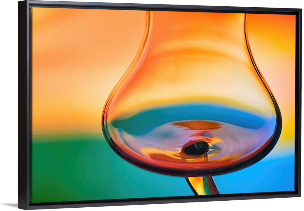 <p>Abstract photo of a wine glass reflecting warped colors.</p>