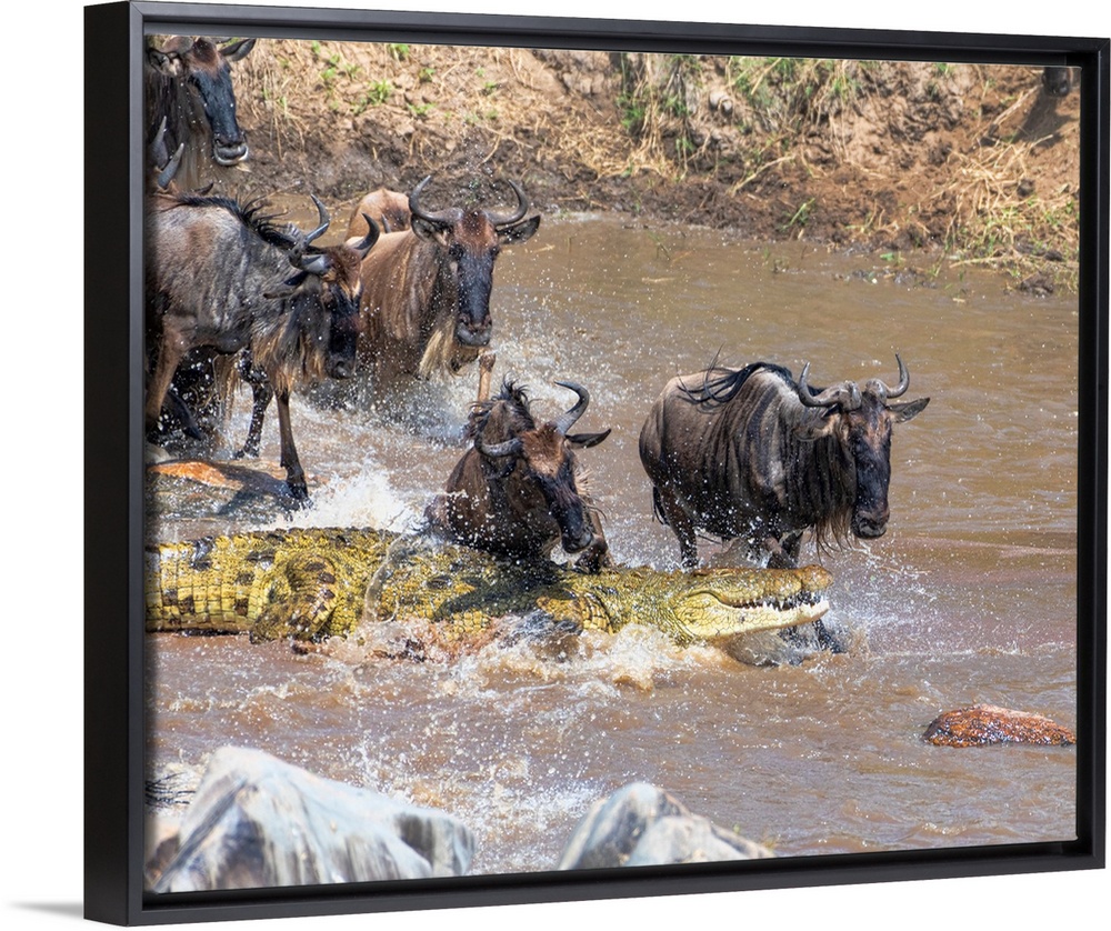 <p>Wildebeests face danger crossing the Mara river in Tanzania, Africa during the great migration.</p>