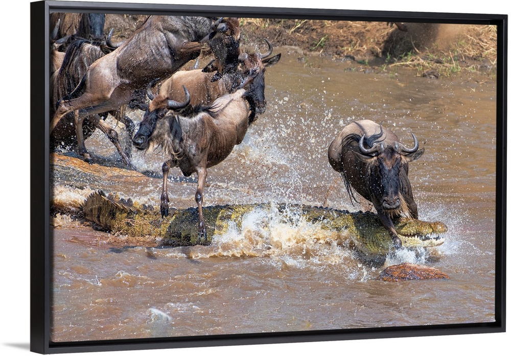 <p>Wildebeests face danger crossing the Mara river in Tanzania, Africa during the great migration.</p>