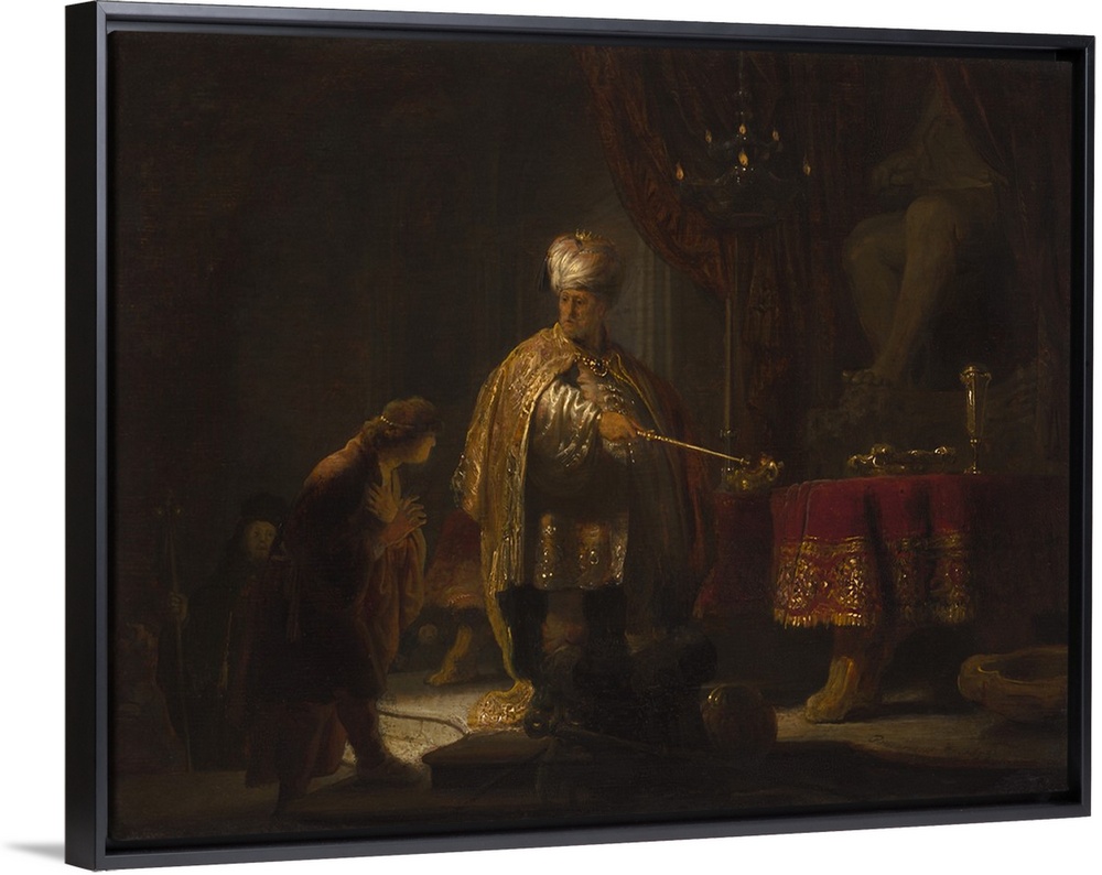 <p>Daniel and Cyrus Before the Idol Bel, by Rembrandt van Rijn, 1633, Dutch painting, oil on panel. Humble Daniel explains to Great King Cyrus why he does not worship the deity Bel. Rembrandt evoked the exotic mystery of a pagan cult and temple (BSLOC_2016_6_227)</p>