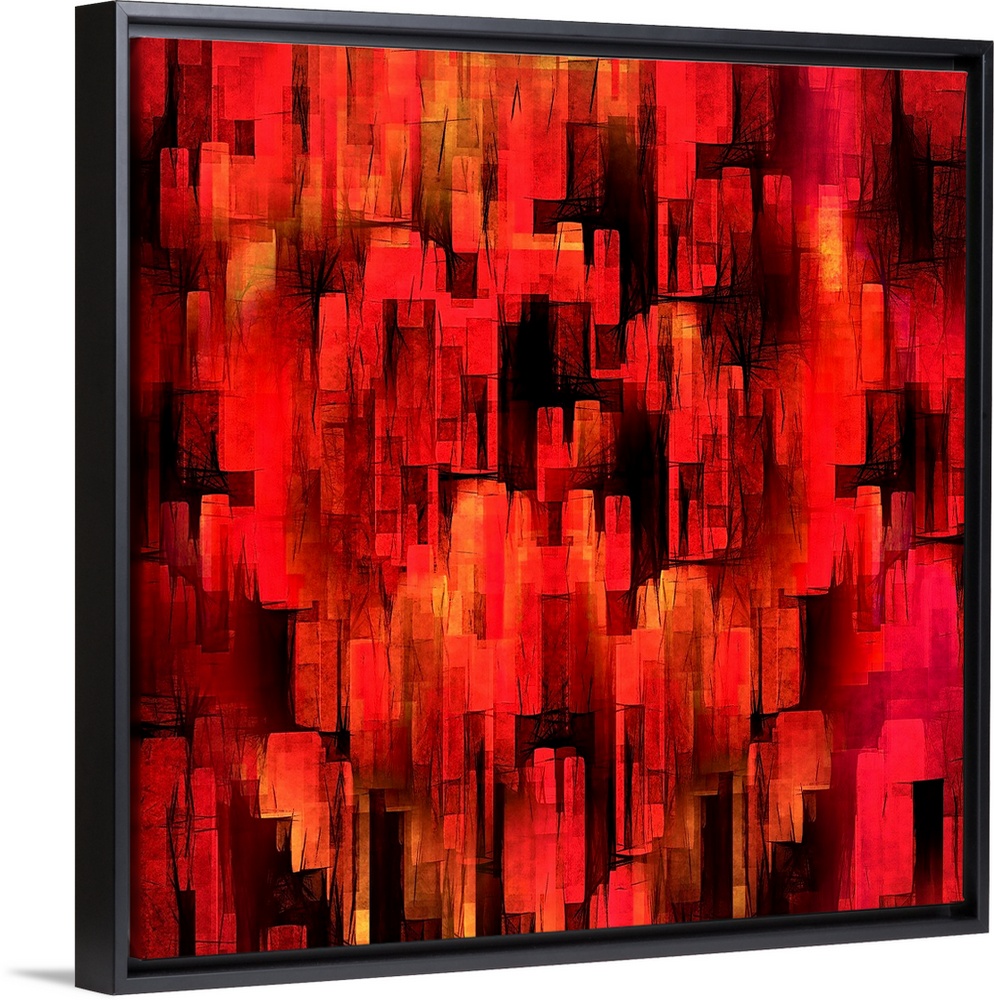 <p>Square ed and black abstract with vertical rectangles stacked together creating depth.</p>