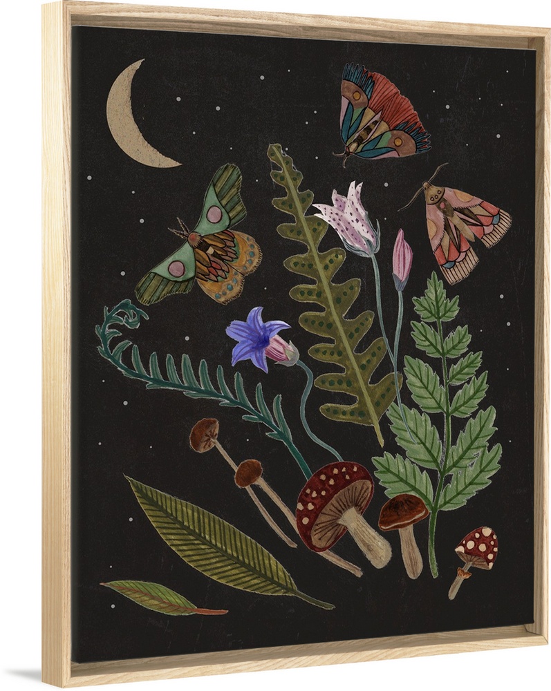 Art Black and White Wall Art Forest Forager Decorative Art Florals Ferns Mushrooms Painting Melissa Wang Wildlife Insect and Arachnid Butterfly