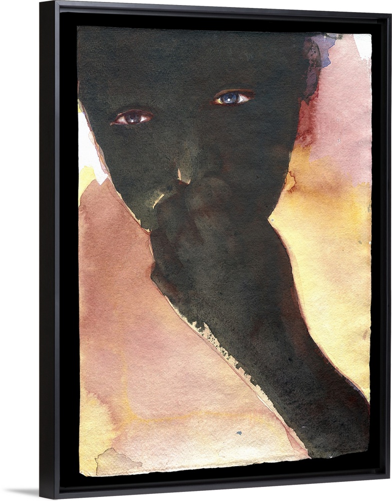 <p>Contemporary watercolor painting of silhouetted figure with their hand up to their mouth and looking into nothing.</p>
