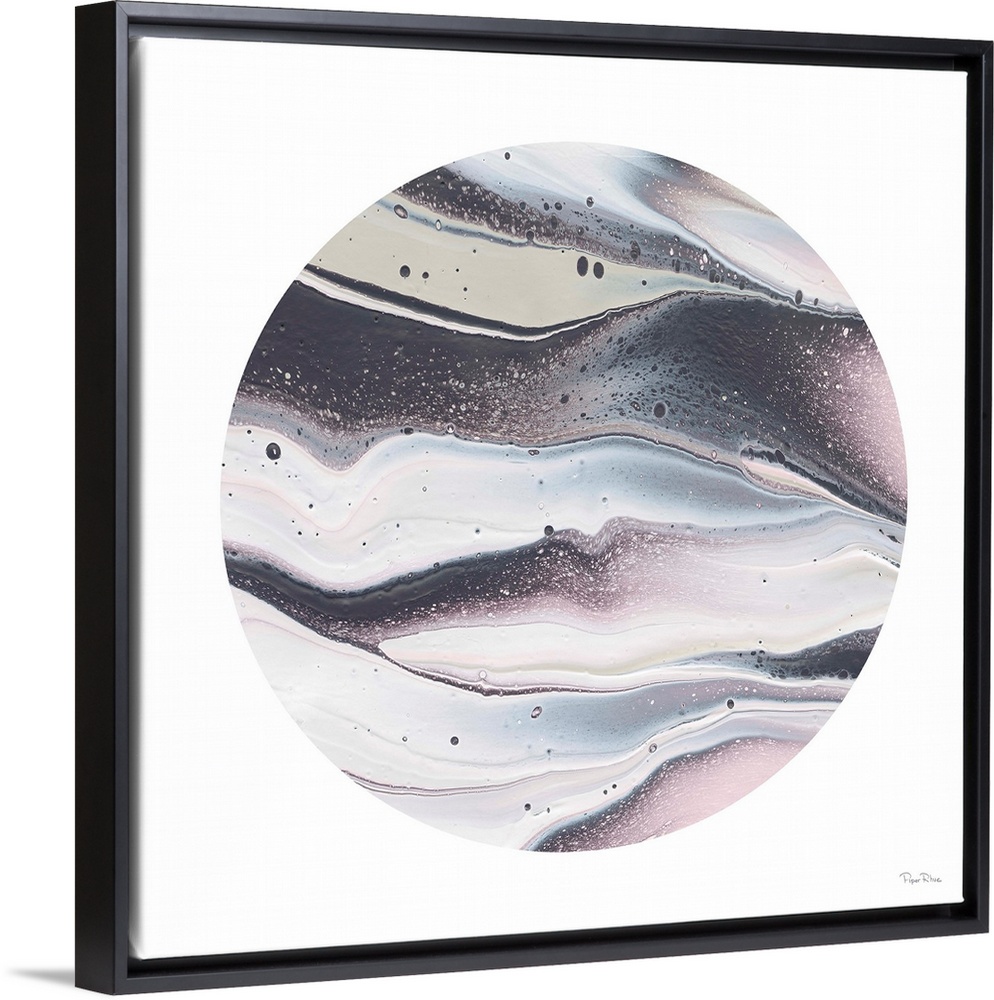 <p>Square geometric art of a purple, blue, black, and pink marble designed circle on a solid white background.</p>