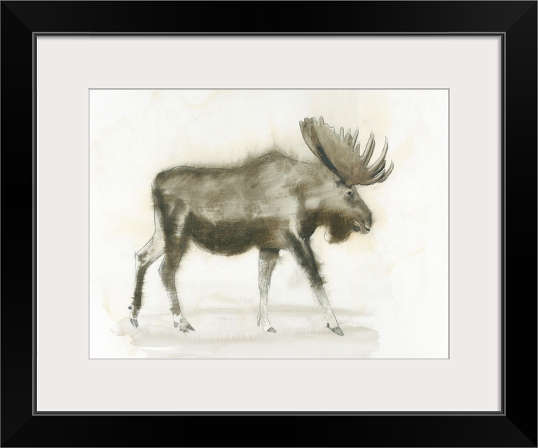 <p>Contemporary artwork of a moose standing against a white background.</p>