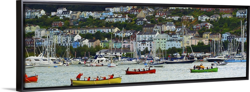 <p>Contemporary scenic painting of a harbor town with a regatta taking place.</p>