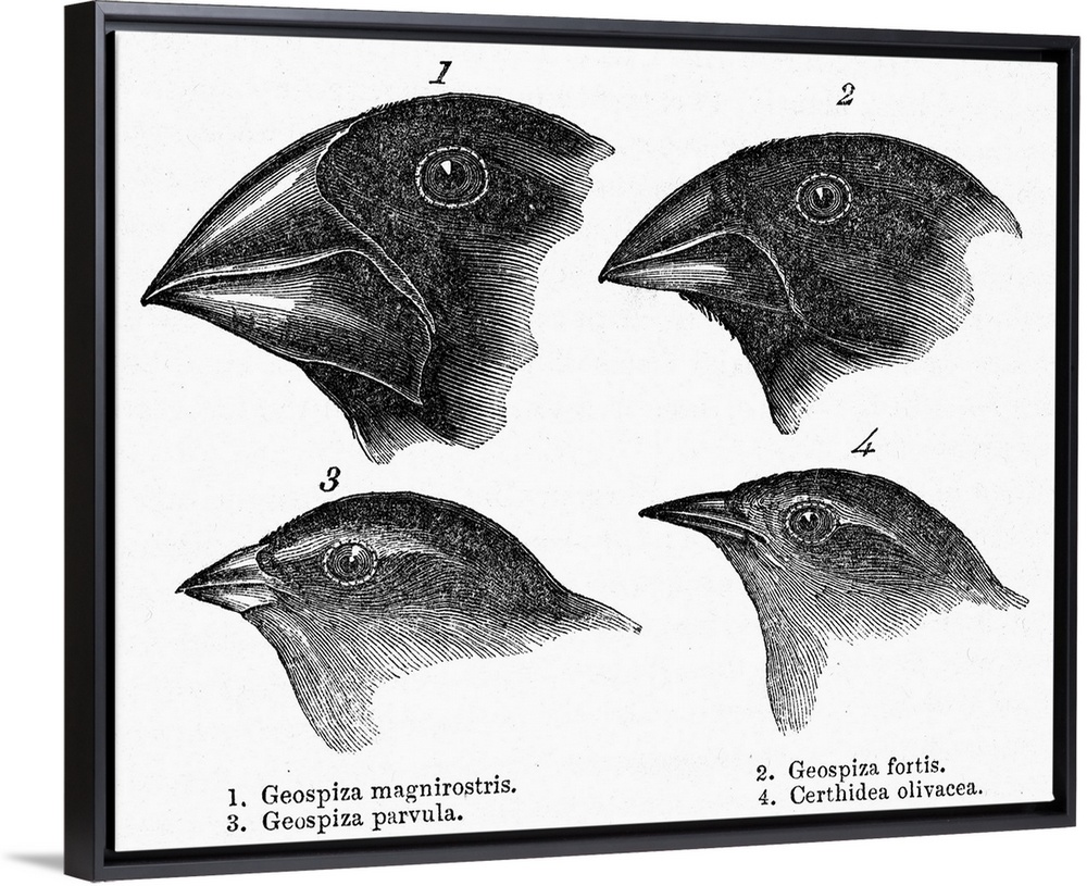 <p>Darwin, Galapagos Finches. The Page From A 19th Century Edition Of Charles Darwin's Journal Of Researches, Wherein the Gradation In the Size Of the Beaks Of the Galapagos Finches Is Noted.</p>