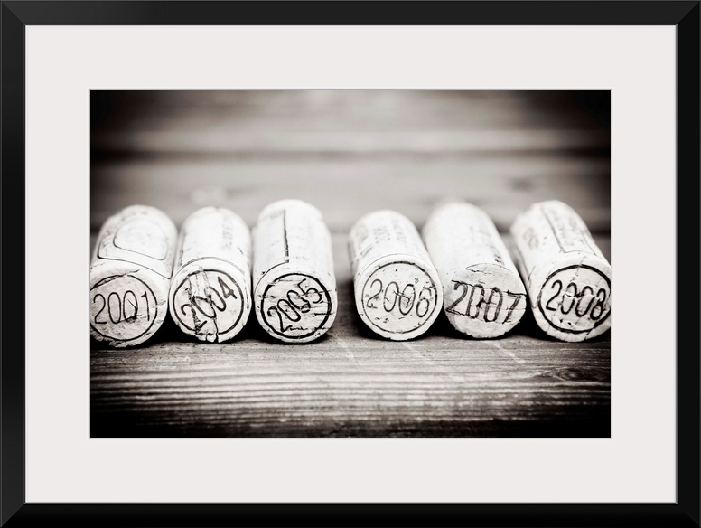 <p>Dated Wine Bottle Corks On The Wooden Background</p>