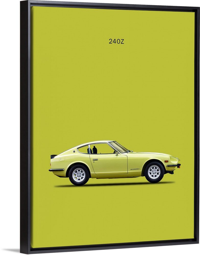 <p>Photograph of a lime green Datsun 240Z 1969 printed on a yellow-green background</p>
