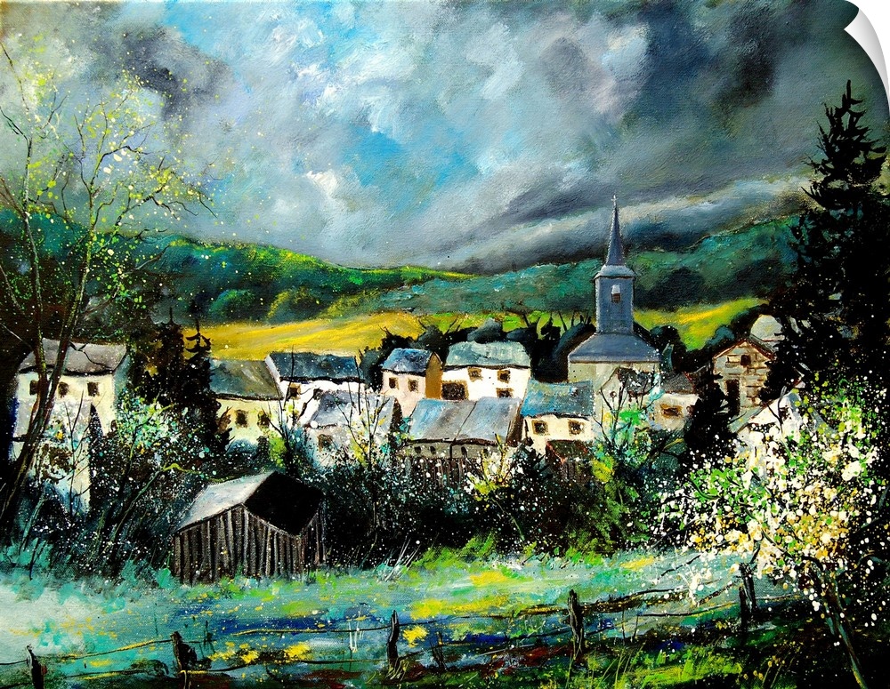 <p>A horizontal contemporary painting of the village of Daverdisse. Daverdisse is a Walloon municipality of Belgium located in the province of Luxembourg.</p>