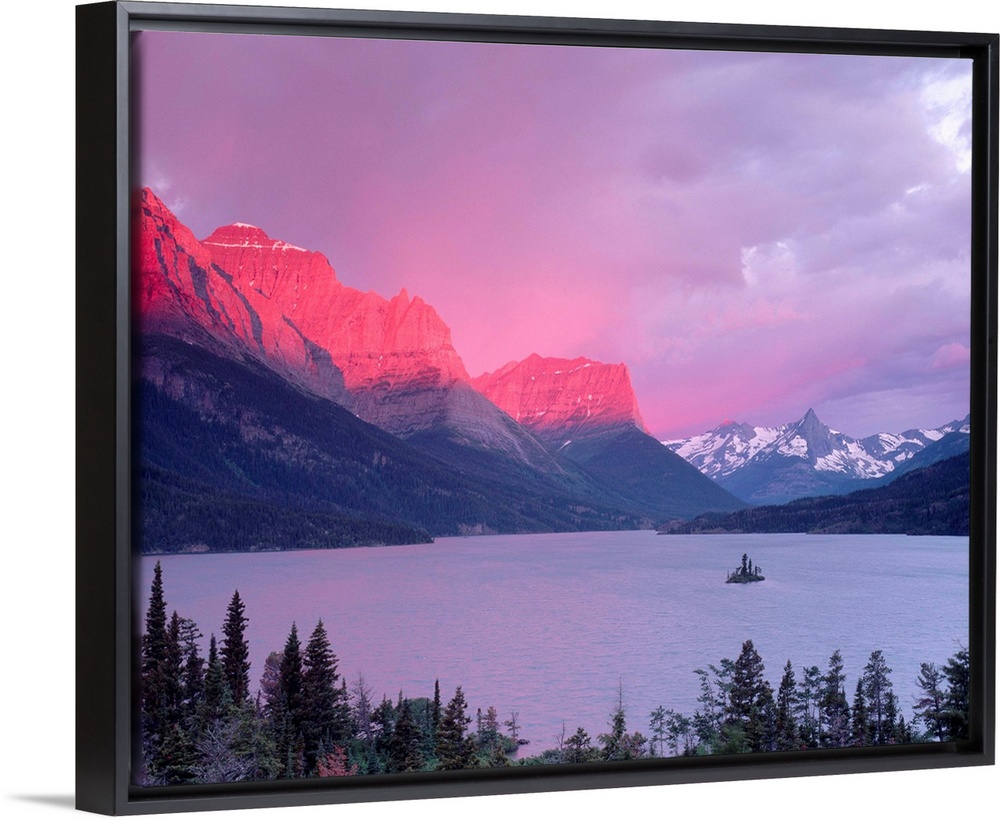 <p>Dawn sunlight illuminates the Rocky Mountains above Saint Mary Lake.</p>
