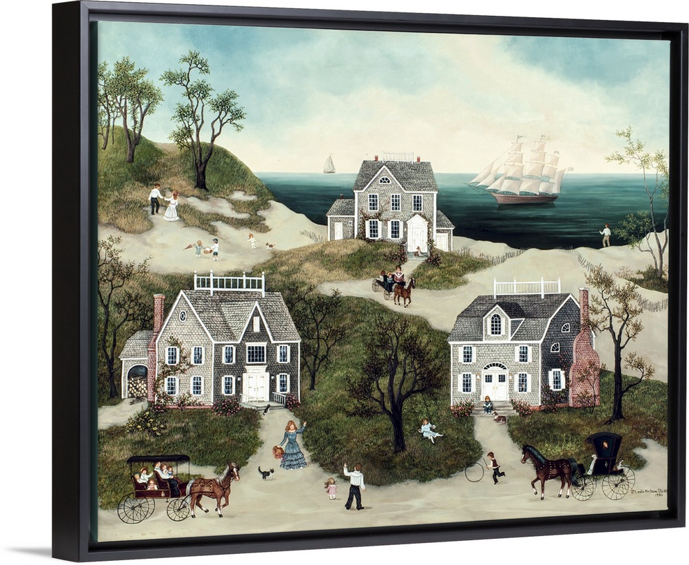 Americana Art Coastal Contemporary Art Folk Art Landscapes Harbor Villages Painting Linda Nelson Stocks
