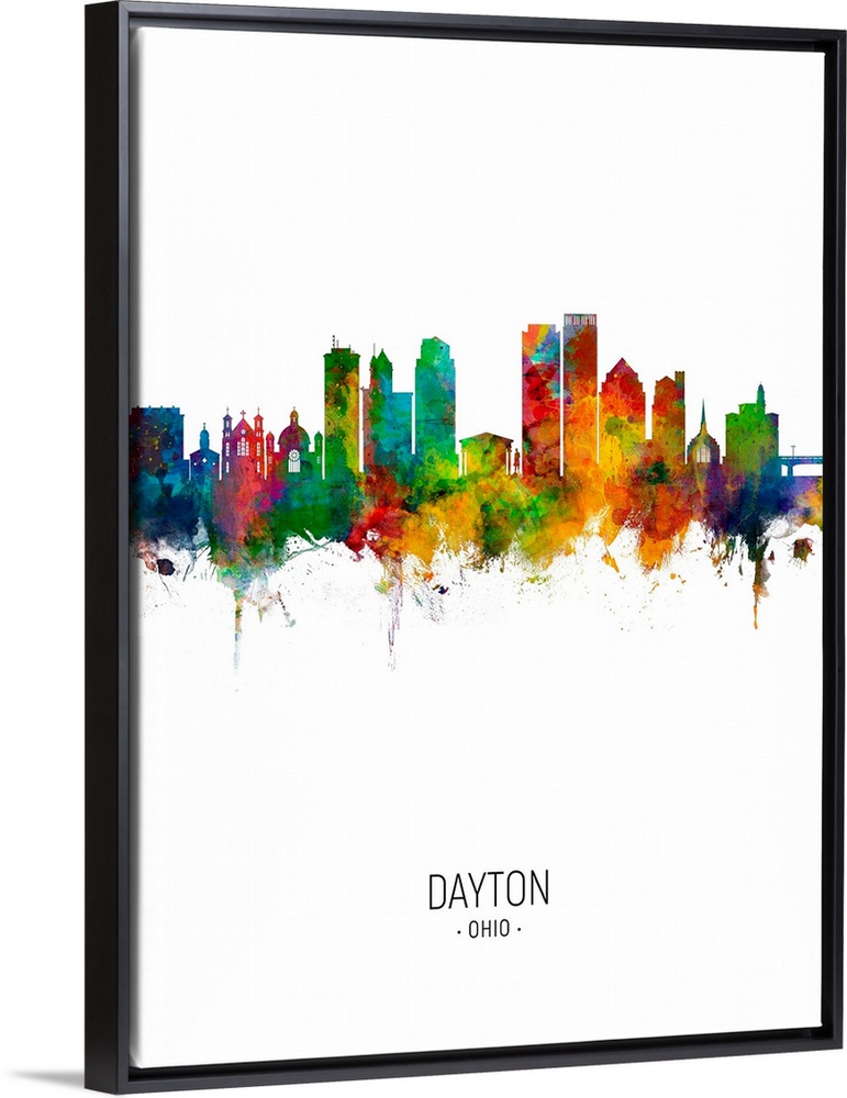 <p>Watercolor art print of the skyline of Dayton Ohio, United States</p>