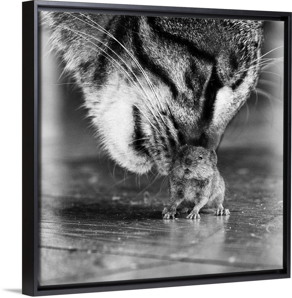 <p>Close up of a cat nuzzling its natural prey, a small mouse.</p>