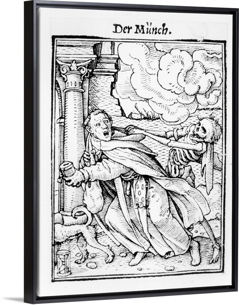 <p>XJF143251 Death and the Mendicant Friar, from 'The Dance of Death', engraved by Hans Lutzelburger, c.1538 (woodcut) (b/w photo) by Holbein the Younger, Hans (1497/8-1543) (after); Private Collection; German, out of copyright</p>