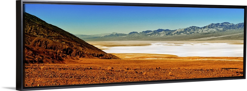 <p>Photo of the Death Valley desert landscape, a flat plain bordered by low mountains.</p>