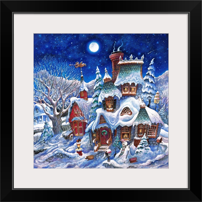 Architecture Houses Art Bill Bell Blue Wall Art Contemporary Art Four Seasons Winter Snowscapes Painting