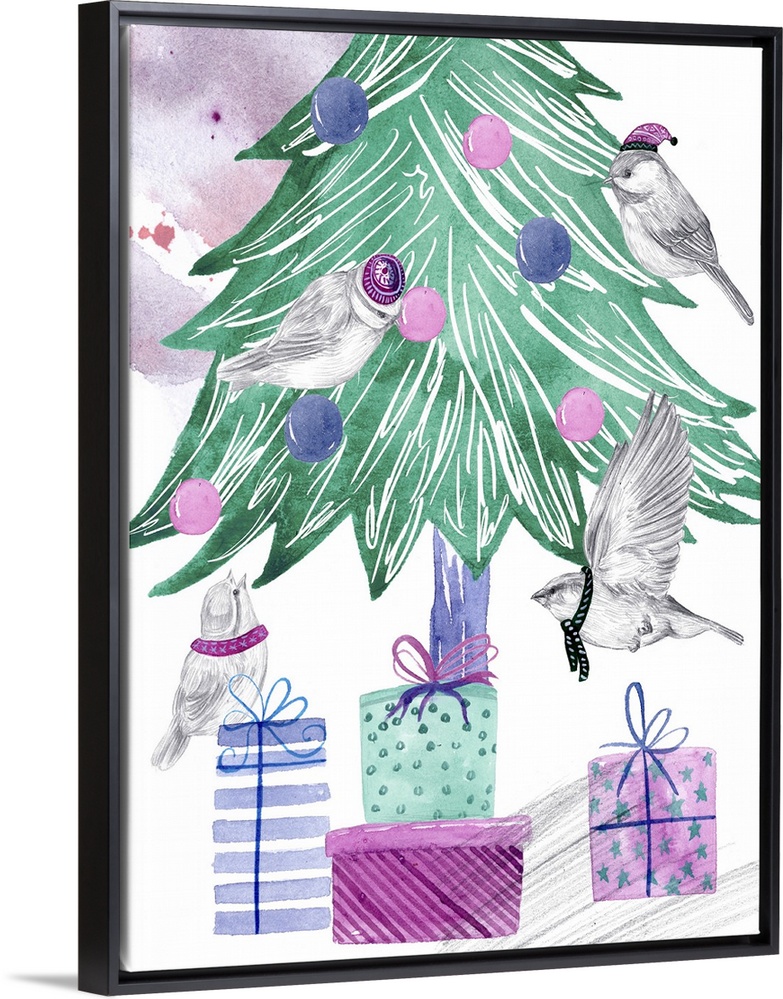Art Decorative Art Holidays Christmas Christmas Trees Painting Melissa Wang Watercolor Wildlife Bird