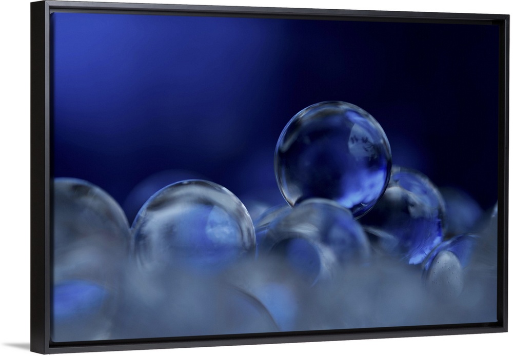<p>A macro photograph of a stack of blue clear spheres.</p>