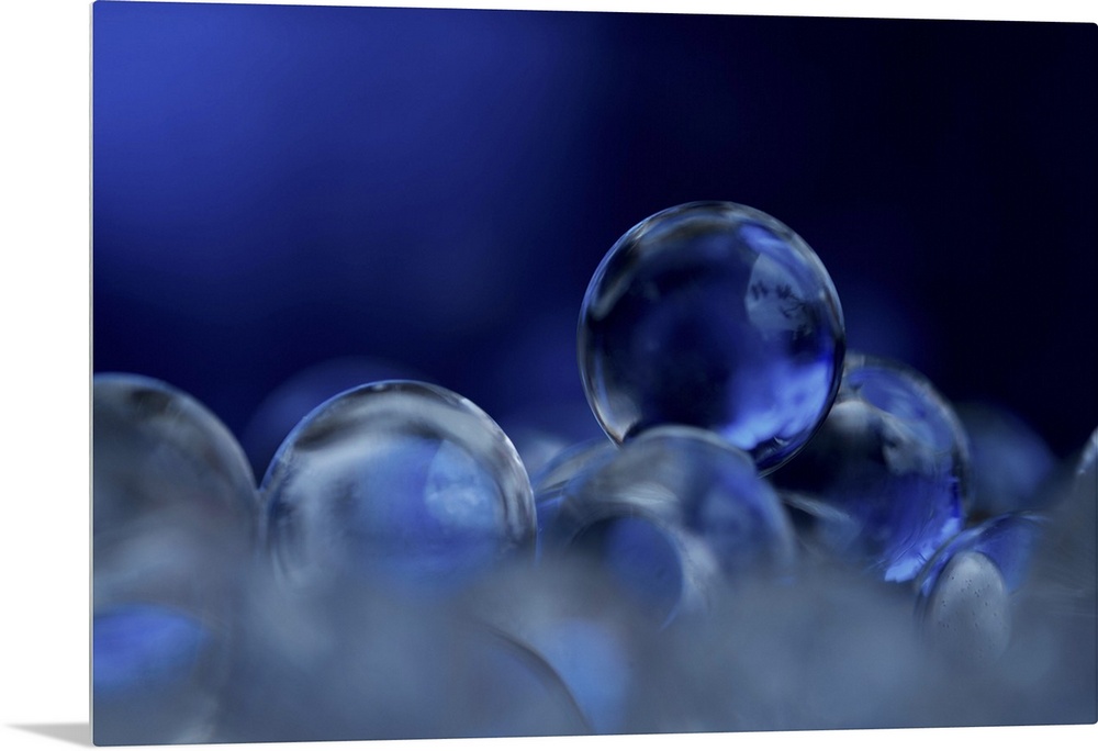 <p>A macro photograph of a stack of blue clear spheres.</p>