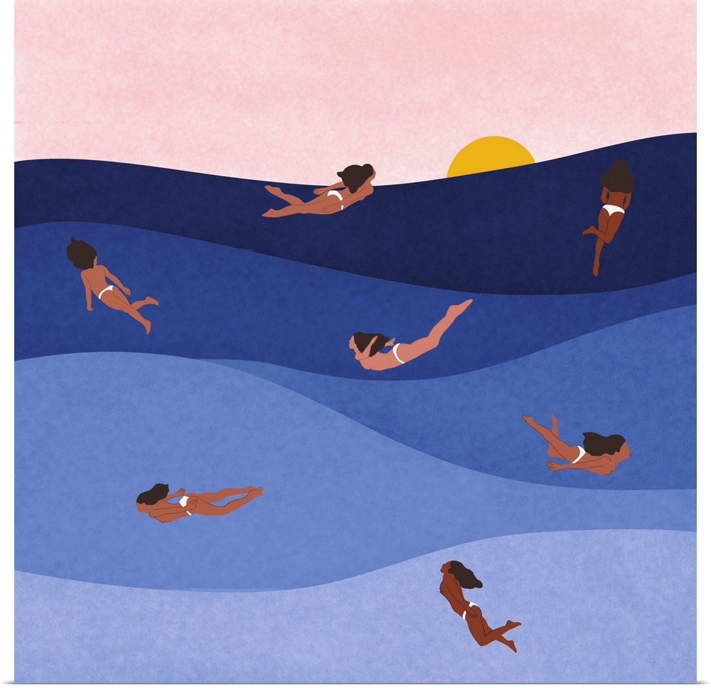 Ceyda Alasar Art Coastal Blue Wall Art Contemporary Art Graphic Art Seascapes People