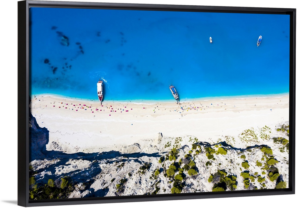 <p>Deep blue waters in Ionian sea with two cruise boats letting tourists enjoy an inaccessible beach.</p>