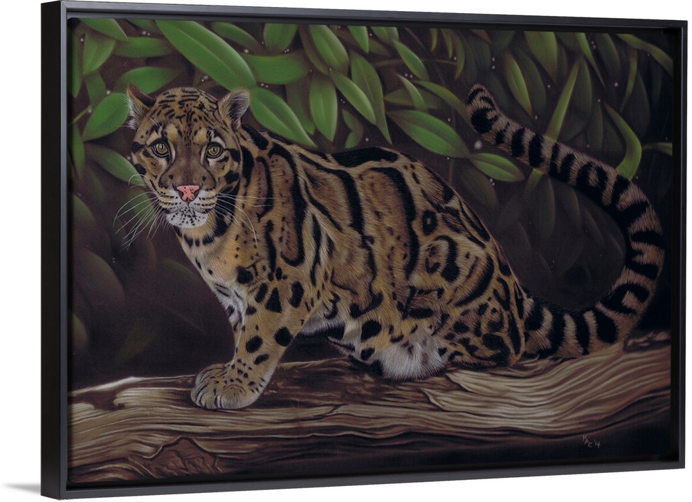 <p>Contemporary artwork of a clouded leopard in a forest.</p>