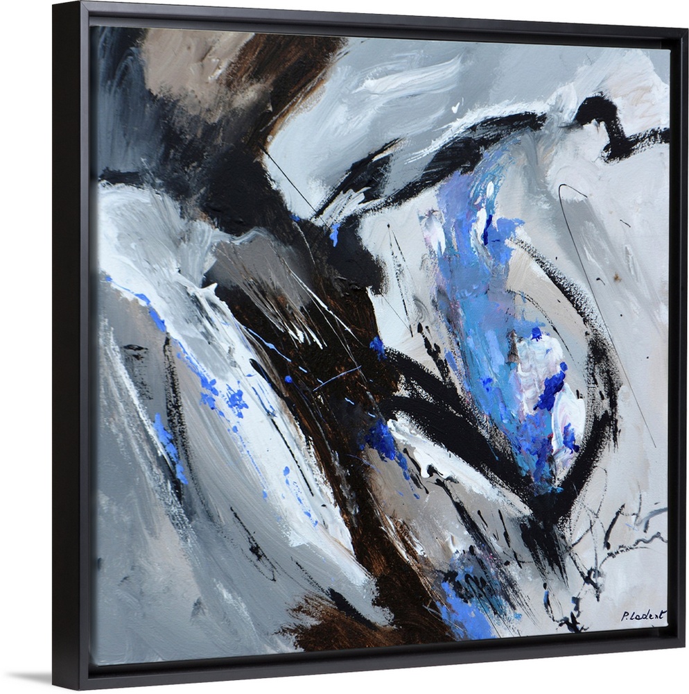 <p>Contemporary abstract painting in gray, black, and blue.</p>