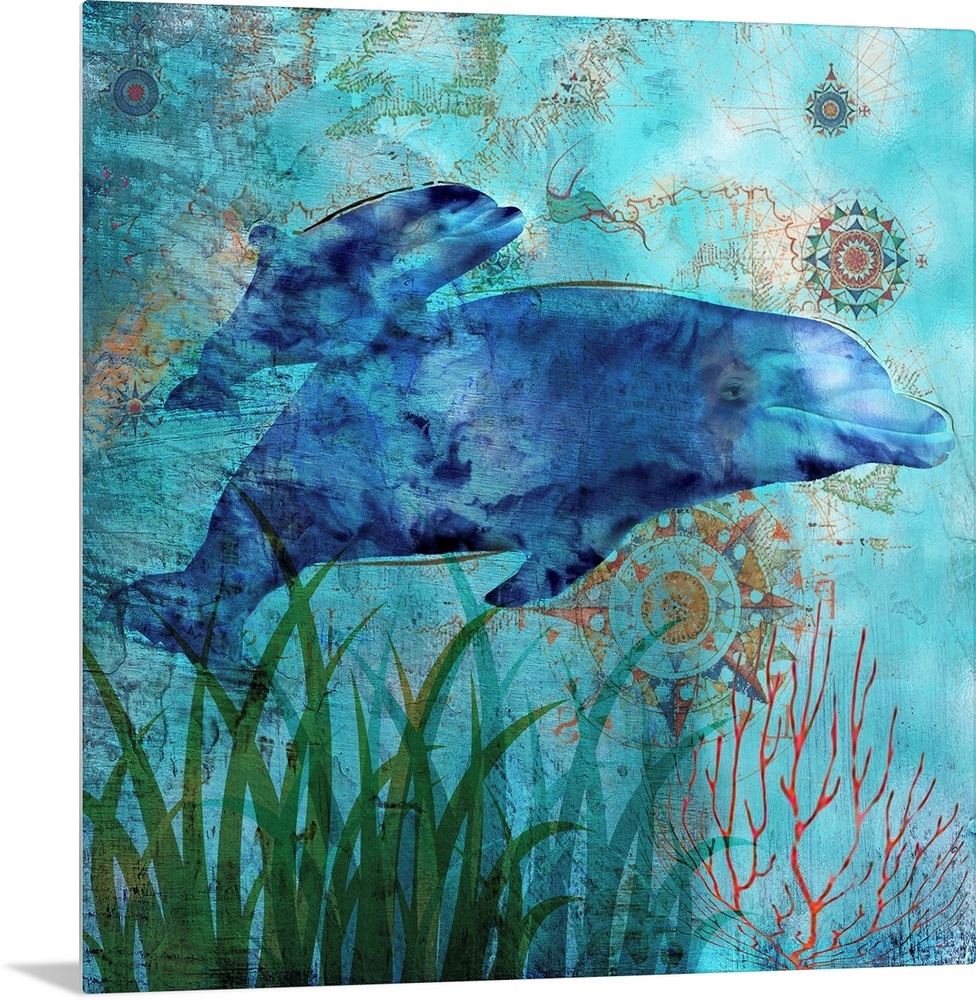 Art Nan Art Blue Wall Art Decorative Art Painting Watercolor Wildlife Marine Life Whale