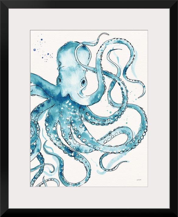 Art Coastal Blue Wall Art Wildlife Decorative Art Painting Anne Tavoletti Watercolor Wildlife Marine Life Octopus and Squid